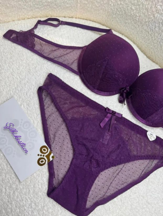 ست زیبای بنفش کار وارداتی فنر دار دیف قزن جک دار داخل کاپ کاملا نخی